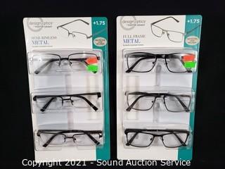 Lot #0276: 6 Design Optics +1.75 Reading Glasses