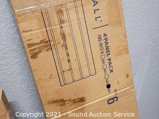 Lot Details: 4 panel pack, white, approx. 12" x 48" with 2 big mouth utility hooks and 2 metal shelf brackets (silvered) 13" x 24". All like new in original packaging.