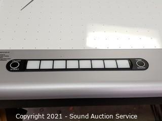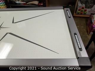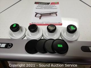 Lot Details: Like new condition, works. Comes with 4 pucks, 4 pedals and manual. Overall 31.5" x 43.5" x 84" (90" diagonal).