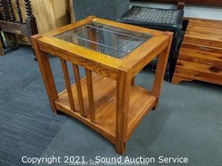 Lot #0310: Mission Style Leaded Glass Top Side Table