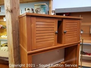 Lot Details: Sliding tray for keyboard, large work space with cord hole, 2 upper cabinets, has a board to tack notes. In excellent condition. 66" x 35.25" x 27".