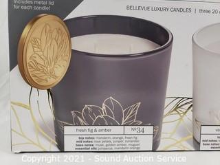 Lot #0231:     New 3pk Bellevue Luxury Scented Candles