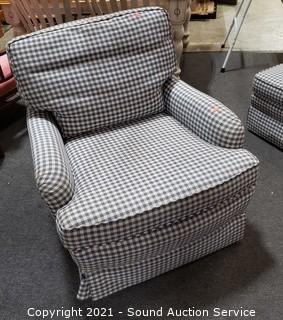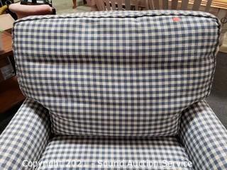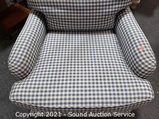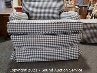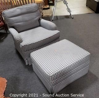 Lot #0011: Nice Blue & White Fabric Arm Chair w/Ottoman
