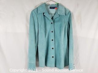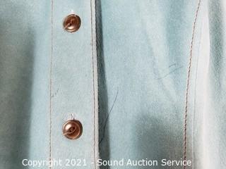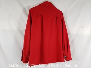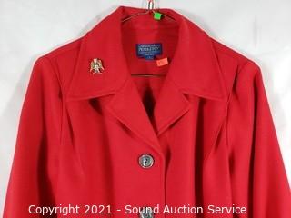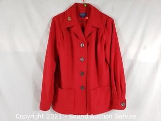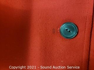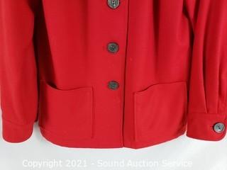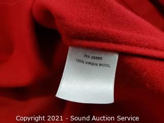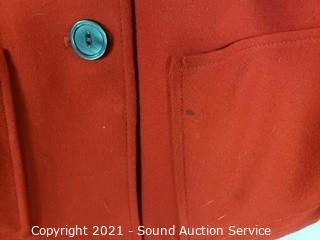 Lot Details: One is 100% virgin wool, other is 100% pig suede leather. Red wool jacket has a couple dirty spots, may wash out, leather jacket has some blue lines (pen?) on the front, otherwise both are in great condition.