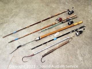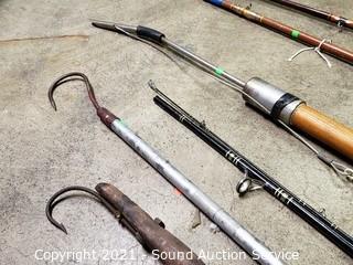 Lot #0046: Pole Spear & 4 Fishing Rods & 2 Gaf Hooks