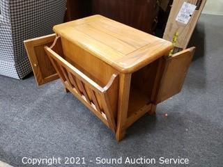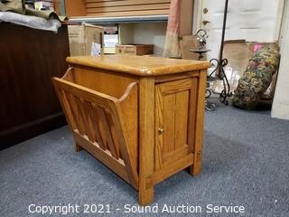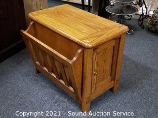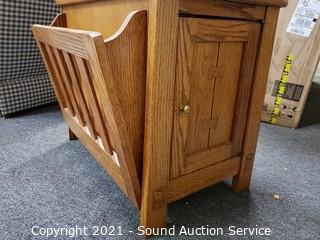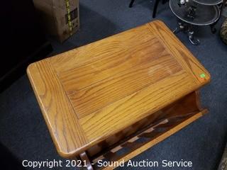 Lot #0044: Solid Oak Pass Through Magazine Rack Side Table