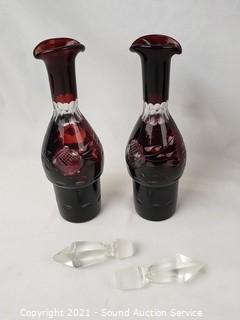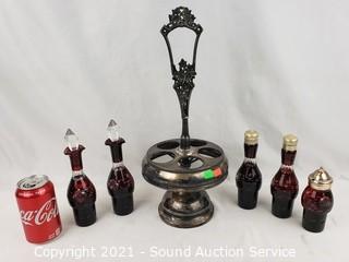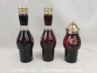 Lot #0081: Vintage Cut Ruby Glass & Silver Plate Cruet Set