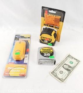 Lot #0202: Zircon HD25 Stud Sensor, Dewalt & Stanley Tapes