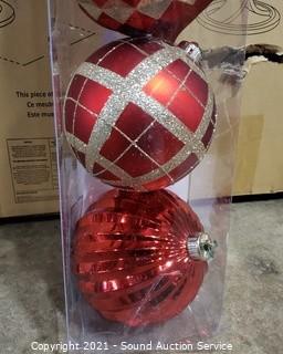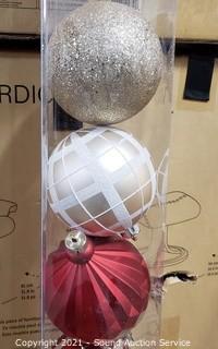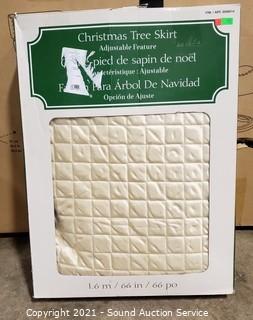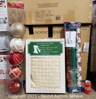 Lot #0439: X-mas Tree Skirt, 6" Ornaments & Wrapping Paper