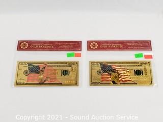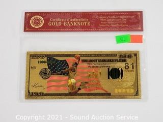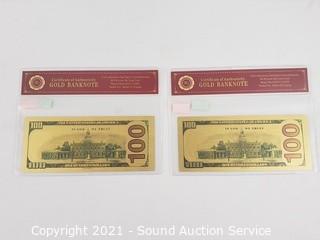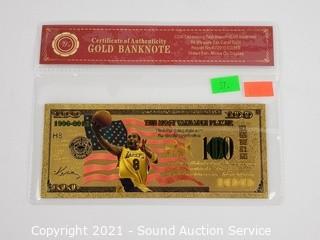 Lot #0490: 2 Kobe Bryant 99.9% 24kt Gold $100 Banknotes