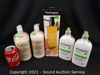 Lot Details: 2 Amlactin daily moisturizer 20oz bottles, pumps are broken. 2 Shea Moisture coconut oil shampoo's 34oz bottles & Neutrogena Rainbath shower gel 40oz bottle, broken pump.