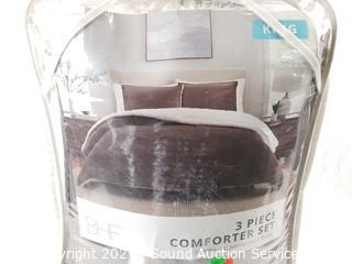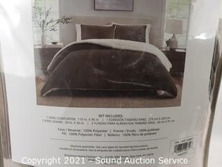 Lot #0206: 3pc King Brown Plush Sherpa Comforter Set