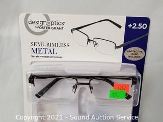 Lot #0111: 6 Pairs Design Optics +2.5 Reading Glasses
