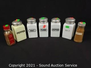 Lot #0041: 7pc Vintage Milk Glass & Other Spice Shakers