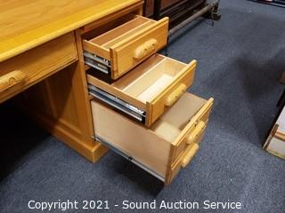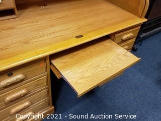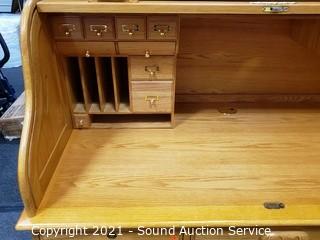Lot #0277: Large Blonde Oak Roll Top Desk