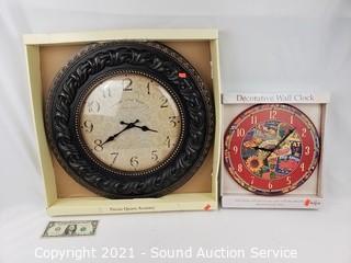 Lot #0080: Pair of New Decorative Quartz Wall Clocks