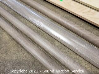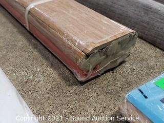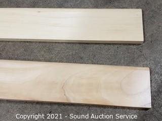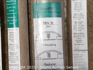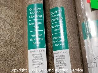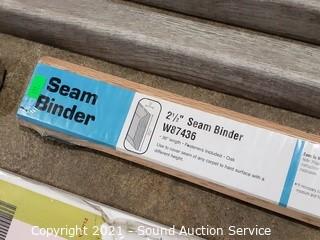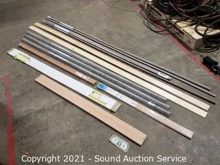Lot Details: (2) Maple 8ft x 2.25" x 3/8" beveled edge, (1) Ash oak 78.75" T-Molding, (2) 94" x 1" quarter round, (3) 78.75" x 1.25" x 1.75" transition molding, 36" x 2.5" oak seam binder. (1) 61" x 4" x .75" White board, (1) 48" x .75" x 3.5" oak board, Pack of oak 47" x 1.75" T-molding.