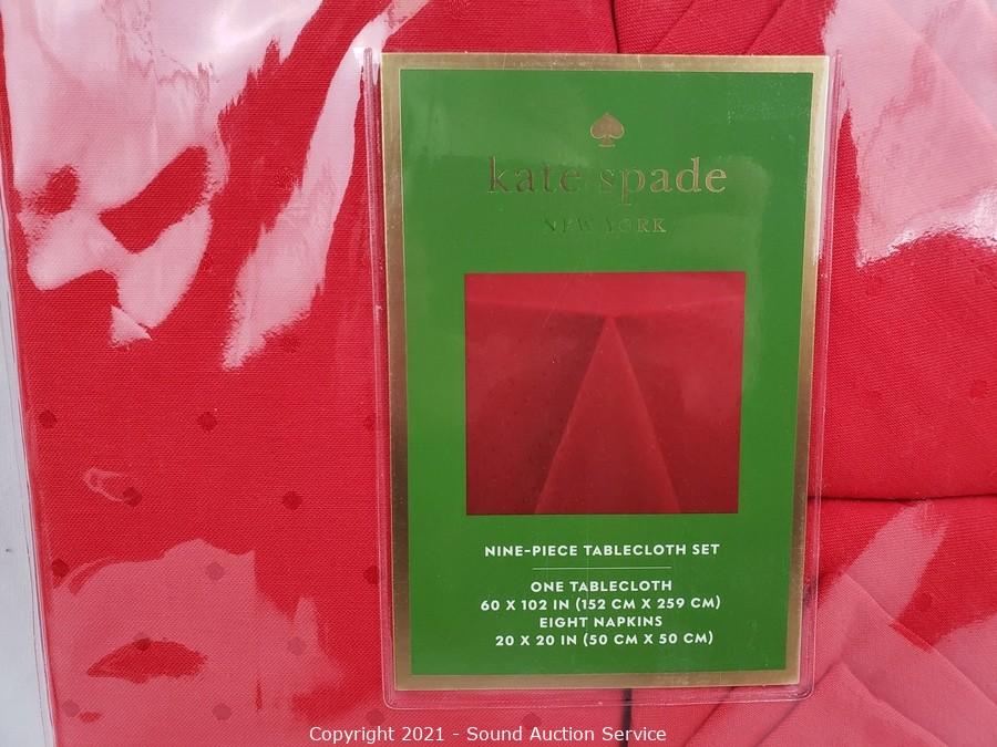 Lot #0462: Like New 9pc Kate Spade Red Tablecloth Set