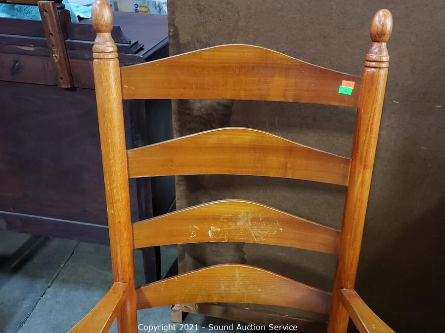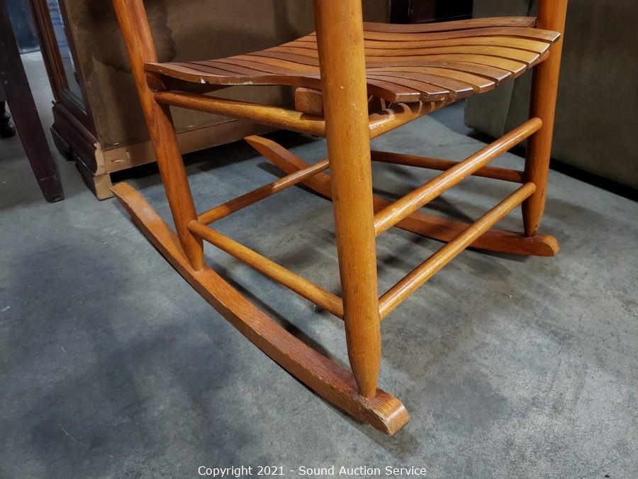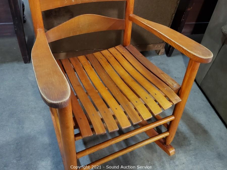 Lot #0007: Slated Seat Ladder Back Wood Rocker