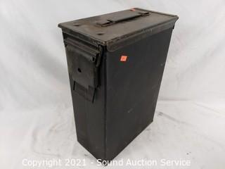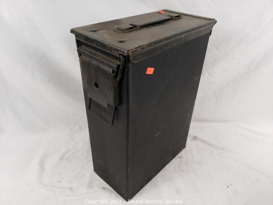 Lot Details: 9" H x 10" W x 6.5" D. & 16" H x 11" x 5.5" ammo tin.