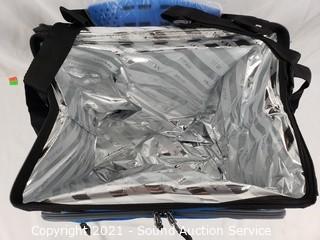 Lot Details: Holds up to 40 cans with ice. Leak proof lining. Approx. 12" x 10" x 14". 1 Strap is ripped, no other issues.