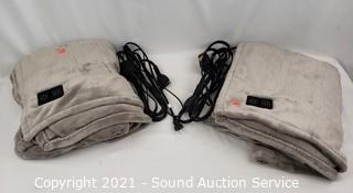 Lot #0279: 2 Brookstone Gray Plush Heated Throw