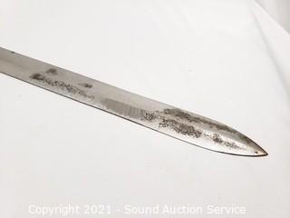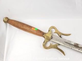 Lot Details: Wood handle, brass guard & pummel. Blade has some rust pitting, slight bend. 51" long overall, 40" blade.