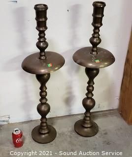 Lot #0101: 2 Large Etched Brass 36" Candle Holders