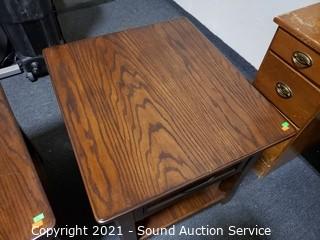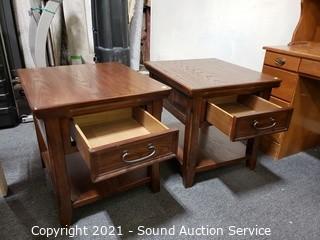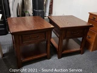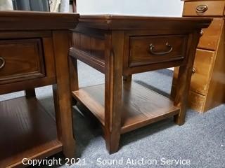 Lot #0011: 2 Nice Dark Oak Finish Single Drawer Side Tables
