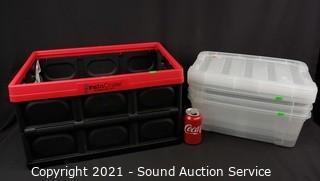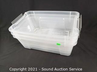 Lot #0262: (3) 12qt Clear Plastic Totes w/Lids & InstaCrate