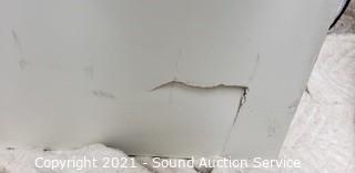Lot Details: Appears complete, White Primed MDF door, has some damage. $319 retail value. #1002453876. 6.6ft T x 24in W.