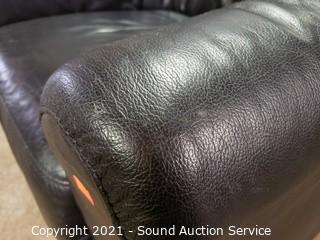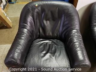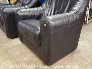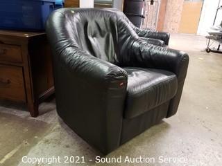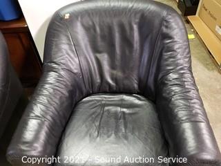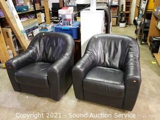 Lot #0366: Pair of Italian Black Leather Swivel Arm Chairs