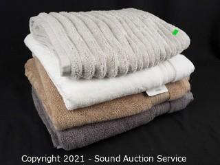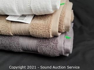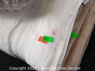 Lot Details: Beige, white, taupe and gray. White towel has a small red stain, refer to photos. No other issues.