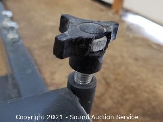 Lot Details: 1 wheel needs replaced, works, but does not turn completely. One knob has a plastic piece broken off. Adjust approx. 8" either direction.