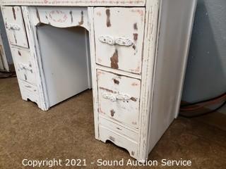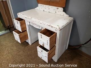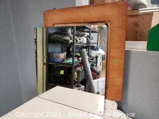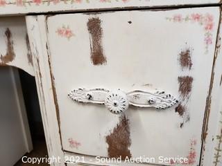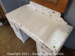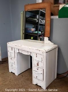 Lot Details: Mirror is not attached, distressed finish, refer to photos for condition. Waterfall style front edge. 30" x 42" x 19" with 33.5" x 28" mirror topper.