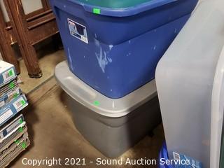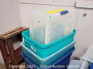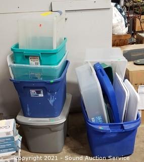 Lot Details: Not sure all the lids fit. Smallest is 5" H x 14" x 11". Largest is 15" H x 30" x 18".