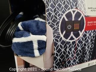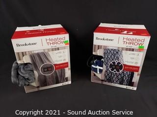 Lot #0061: 2 Brookstone Grey & Blue/Wht Plush Heated Throws