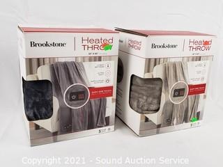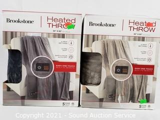 Lot #0065: 2 Brookstone Light & Dark Grey Plush Heated Throws