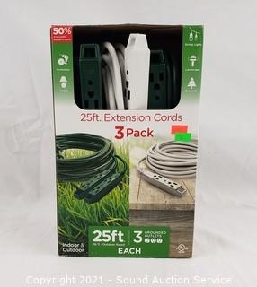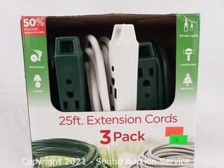 Lot #0138: 3pk Ultra Pro 25ft Extension Cords