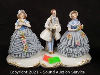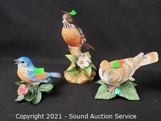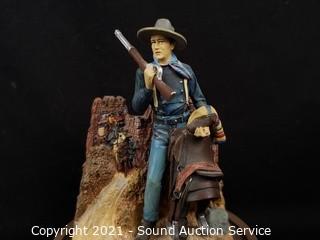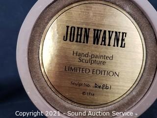 Lot Details: 2 birds are Lenox, other is Andrea by Sadek. Dresden dancer figure and hand painted limited edition John Wayne sculpture. 3.5" to 5.5" tall.
