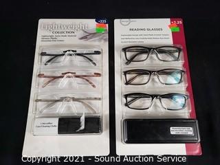 Lot #0046: 6 Design Optics +2.25 Reading Glasses w/4 Cases