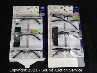 Lot #0047: 6 Design Optics +2.5 Reading Glasses w/2 Cases