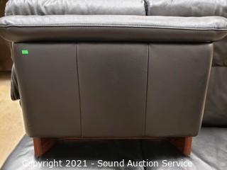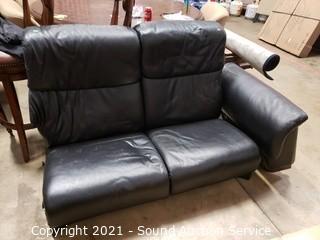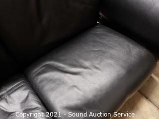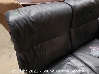 Lot #0510: Black Leather Reclining Love Seat
