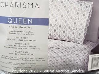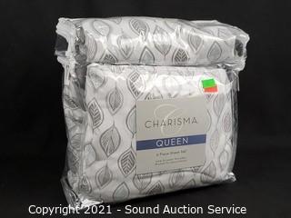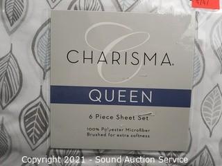 Lot #0068: Charisma 6pc Leaves Grey Polyester Queen Sheet Set