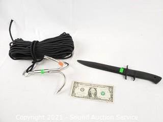 Lot #0432: Grappling Hook w/Nylon Rope & Training Knife