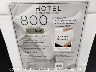 Lot #0035: Hotel Signature 6p White Cotton Cal King Sheet Set