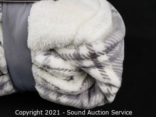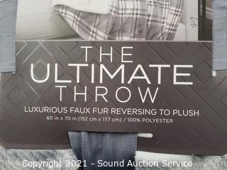 Lot #0087: Like New Life Comfort Plaid Plush Faux Fur Throw