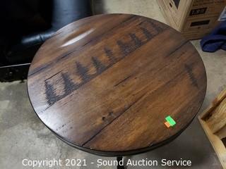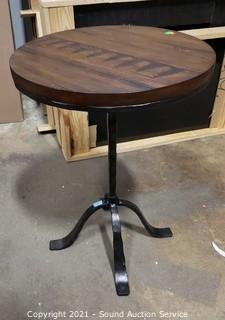 Lot #0496: Nice Wrought Iron Wood Top Side Table