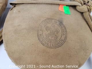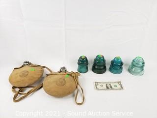 Lot #0404: Pair of Boy Scout's Canteens & 4 Glass Insulators