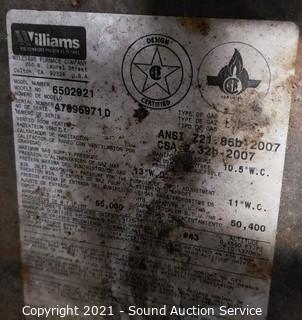 Lot Details: Consignor said it works. Switch on back didn't do anything, maybe for fan?. Model 6502921, serial 47096971D. 65,000 or 50,400 BTU. 33" H x 34" W x 19.5" D.